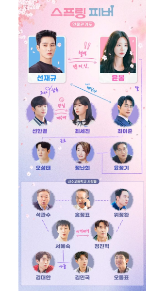 드라마의 재미를 더해주는 스프링피버 인물관계도는 크게 세 그룹으로 나뉩니다.